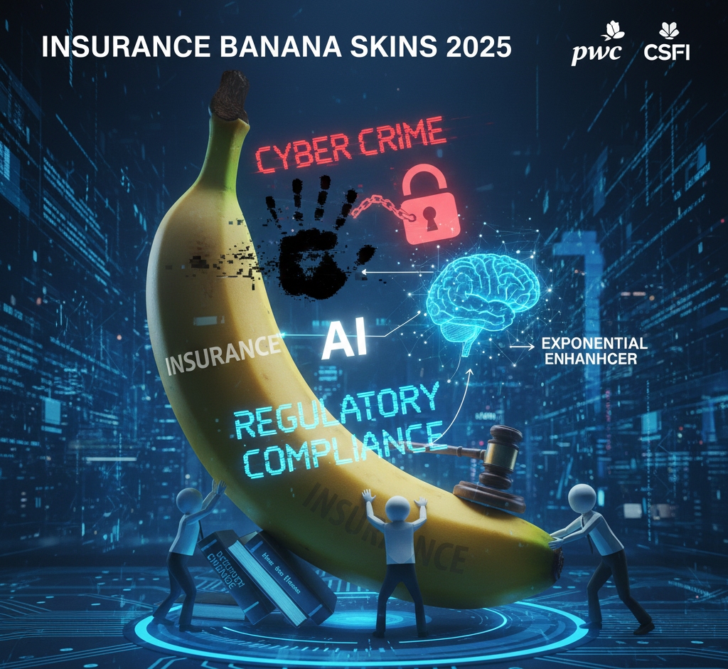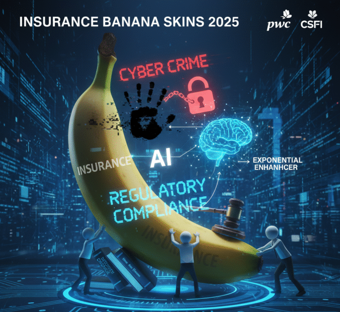 PwC ve The London Foundation for Banking and Banking (CSFI)’ in birlikte hazırladığı Sigorta Sektörü Banana Skins 2025 raporu yayınlandı. Sektörün en kritik risklerini ortaya koyan rapora göre globalde siber suçlar en üst sırayı alırken Türkiye’de ise ilk sırada regülasyon uygunluğu yer alıyor. Raporda aynı zamanda yapay zekânın hem bağımsız bir risk hem de diğer risklerin “üstel güçlendiricisi” olduğu belirtiliyor.